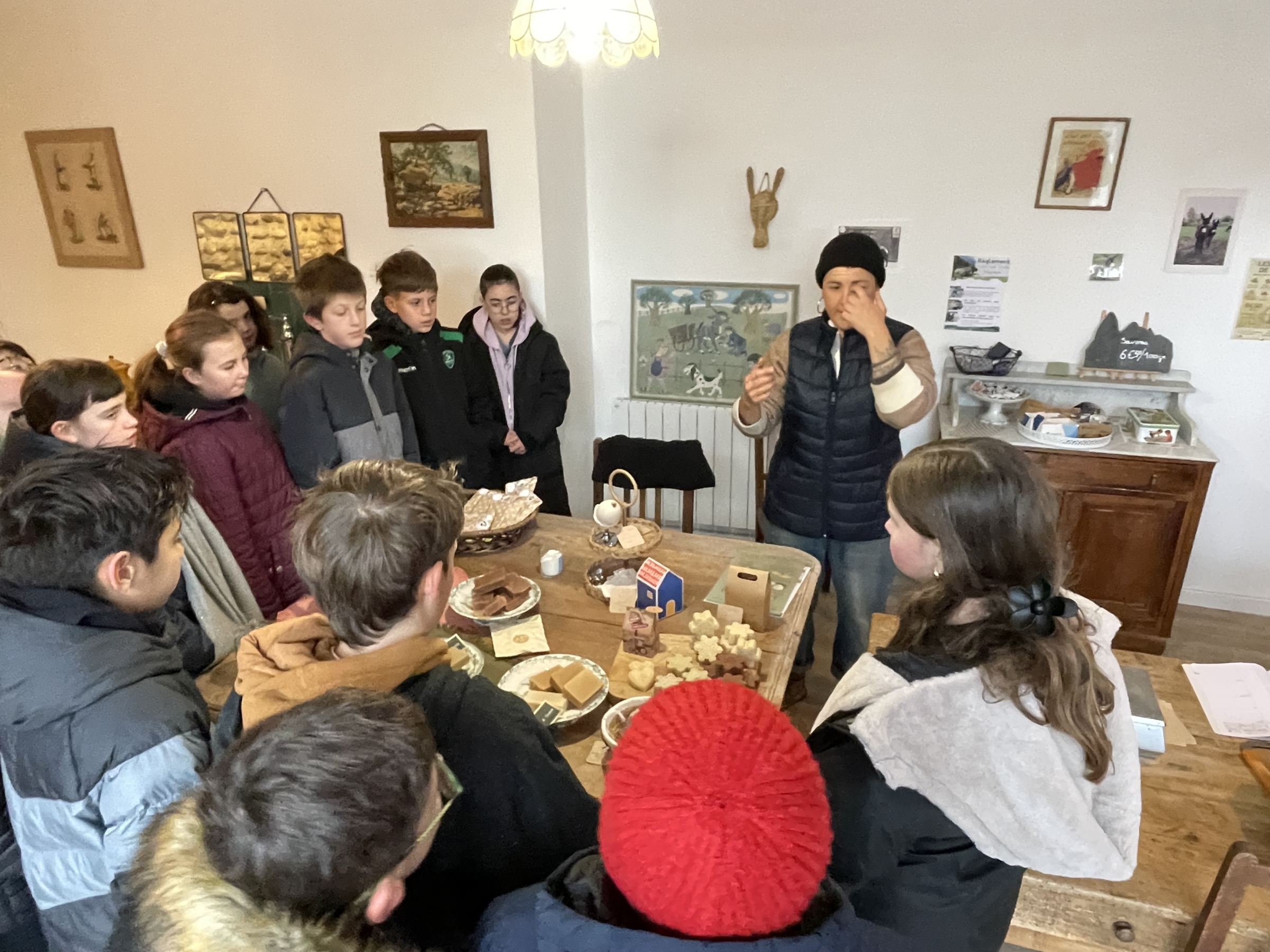 Les élèves de 6ème3 et de 6ème2 participent au jeu « Ma Petite Planète », une série de défis en lien avec l’écologie. Dans ce cadre, ils ont eu l’occasion de visiter la ferme de l’Isarce à Lestelle-Bétharram afin de valider le défi « interviewer un agriculteur ». Une visite riche en découvertes pour nos élèves, notamment avec l’élevage de canards et la savonnerie artisanale, qui permet de valoriser le lait des ânesses de la ferme.